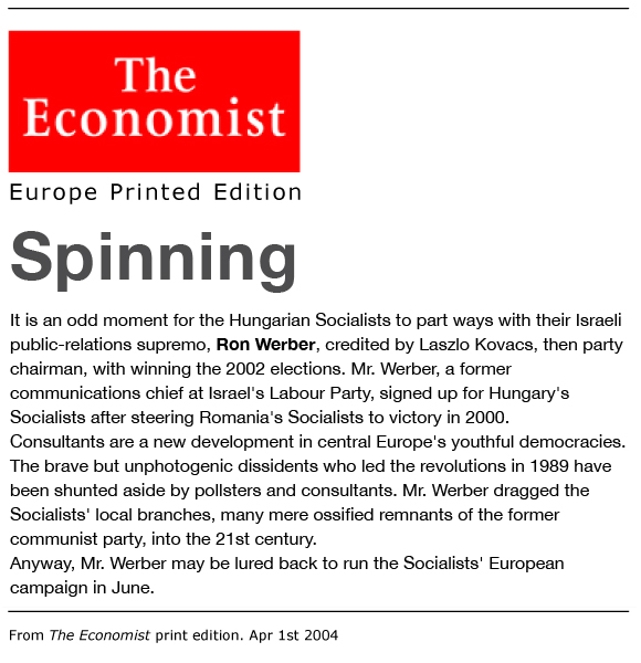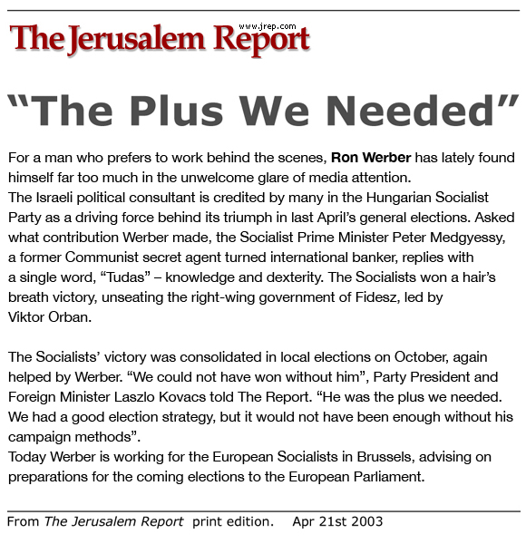 בעיצומה של מערכת הבחירות הכלליות של שנת 1996, חודשים אחדים לאחר רצח רבין, התבקש ורבר לסייע לקמפיין של מפלגת העבודה, אך סירב מאחר ונקבעה האסטרטגיה של "פרופיל נמוך", הוחלט לא להזכיר "יתר על המידה" בתעמולת הבחירות את רצח רבין שהתרחש זמן קצר קודם לכן, ולא לאפשר פעילות רחוב עניפה "כדי לשמור על פרופיל נמוך". מיד אחר כך, ביולי 1996 הוא חבר אל צוות היועצים האמריקאי בראשות ריצ'רד (דיק) דרזנר שסיים זה עתה את קמפיין הניצחון של בוריס ילצין ברוסיה (מרץ-יולי 1996), והחל בפרק האירופי של עבודתו, עד יציאתו לגימלאות בשנת 2020.